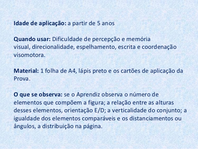 Teste Psicopedagógico 07: PROVA DE PADRÃO GRÁFICO EVOLUTIVO